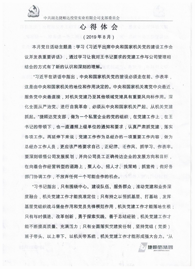 1、談心得體會(huì),本月捷順達(dá)“支部主題黨日”活動(dòng)《心得體會(huì)》評(píng)選,請(qǐng)大家認(rèn)真聽(tīng),然后評(píng)出三位優(yōu)秀者進(jìn)行獎(jiǎng)勵(lì)