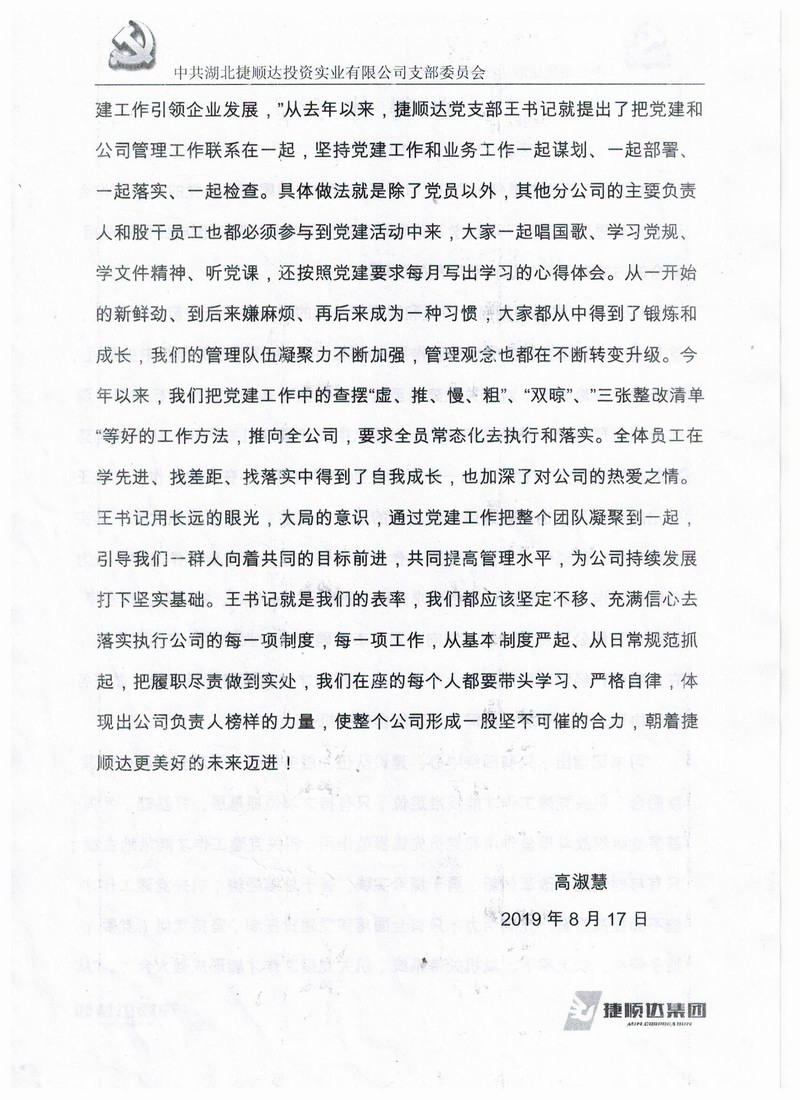 一、支部書(shū)記代表捷順達(dá)黨支部班子作對(duì)照檢查